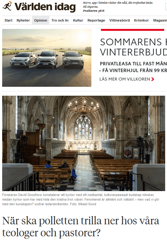 Ledaren avslutas med följande självklara konstaterande: ”Det är budskapet om Kristus, inte budskapet från kulturen, som är församlingens framtid. Det är Ordet och Anden, inte tidsandan, som måste sätta vår agenda.”