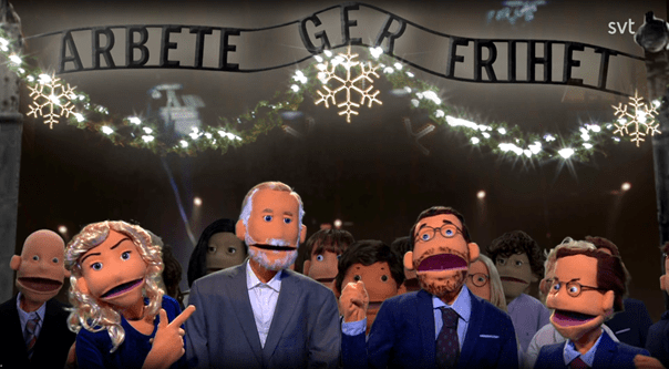Men nu gjordes ju denna satir av opartiska, självständiga och oberoende SVT, så vi får kanske inom en snar framtid se MP, S, C och V placeras framför den berömda skylten till Auschwitzs koncentrationsläger.