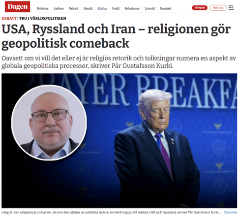 Han konstaterar att: ”Frikyrkligheten har spelat en central roll för såväl demokratisering som sekularisering av det svenska samhället.”, men menar att: ”Detta faktum förtar dock inte värdet i att fråga sig hur, var och varför kristen radikalnationalism och politisk evangelikalism – oavsett omfattning – skapas och sprids även på vår sida Atlanten.