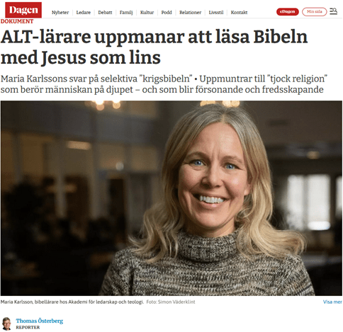 ”Bibeln kan vara en farlig bok, absolut! När vi ser Bibeln som en helig skrift så blir den också en auktoritet. Här går det att använda Bibeln för att driva en agenda som är ond och inte efter Guds vilja, exempelvis som inspiration till våld. …